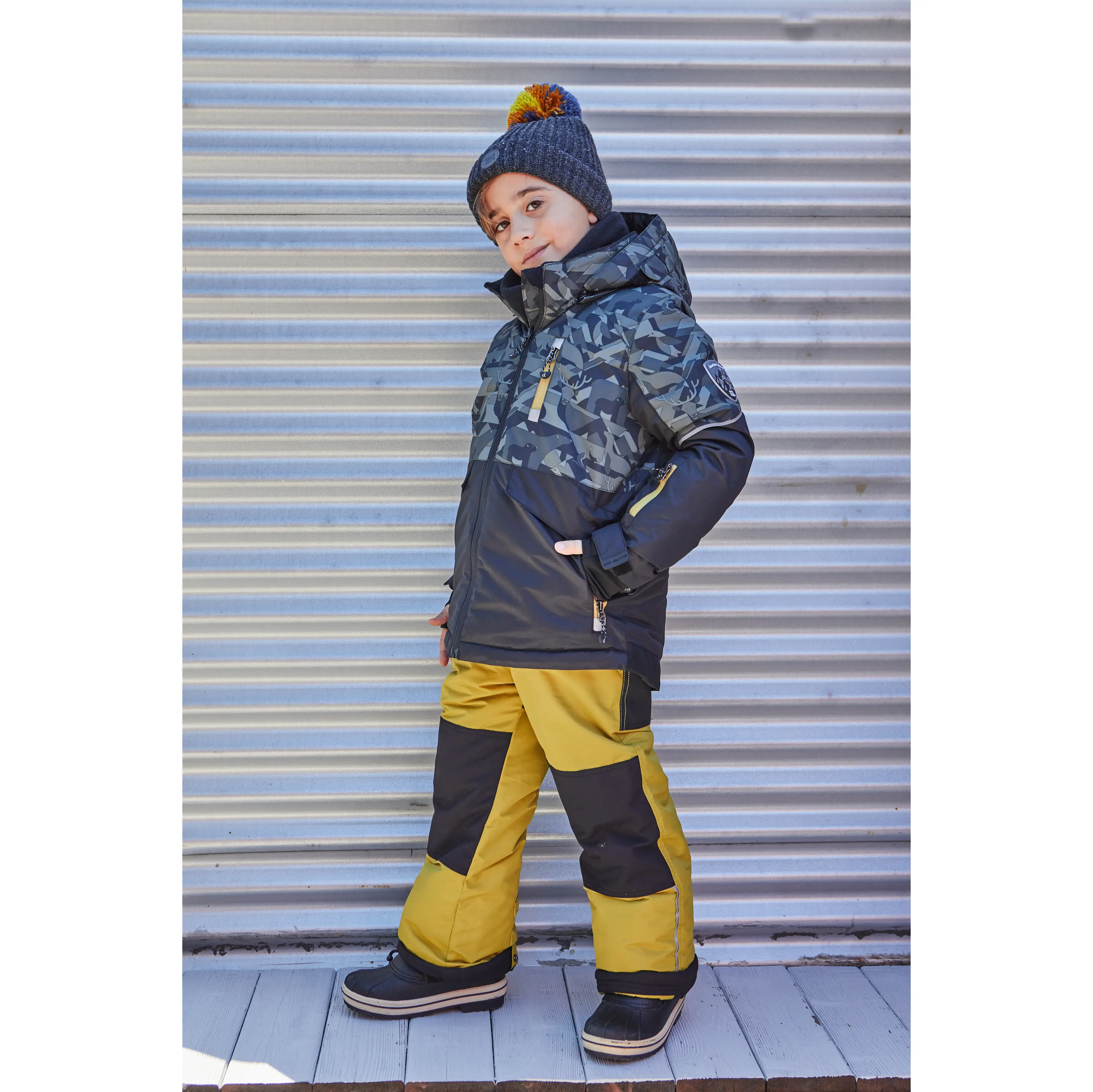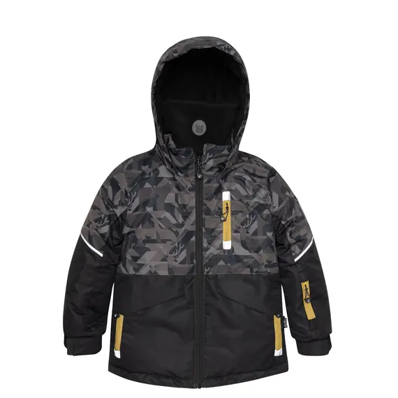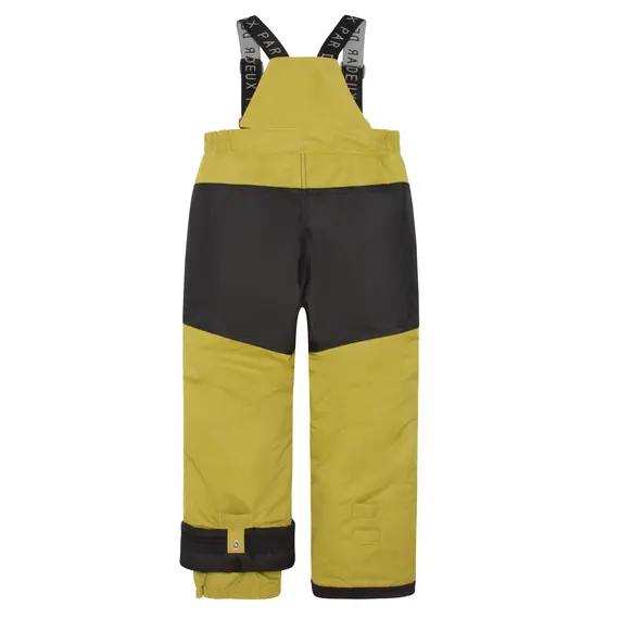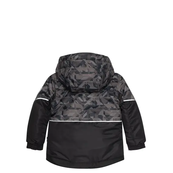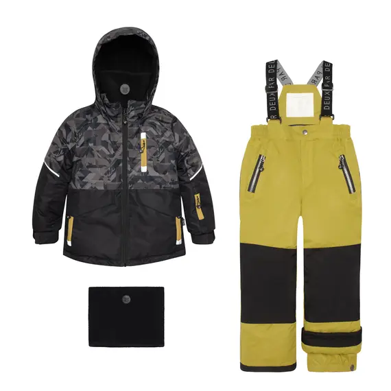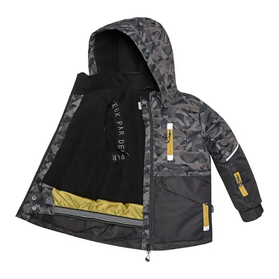 Верхняя часть костюма выполнена из мембранной ткани 5000/5000 с водоотталкивающим покрытием. Этот материал хорошо защищает от продувания и предотвращает промокание утеплителя внутри костюма от капельной влаги, но при этом хорошо отводит пары влаги от тела ребёнка. Для защиты от истирания низ брюк, седалище и колени усилены тканью Cordura повышенной прочности. Имеется система "Рост ребенка", позволяющая регулировать длину брюк до 10 см и длину рукавов до 4 см.