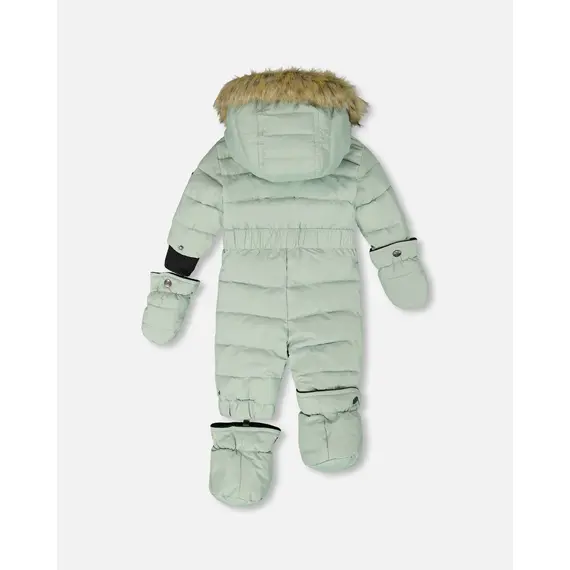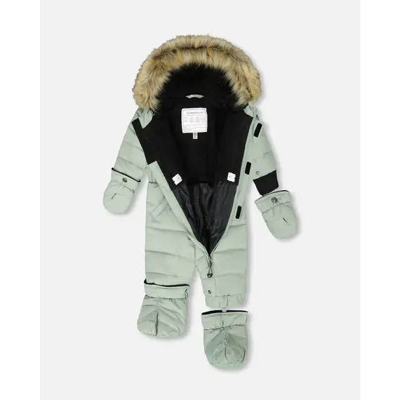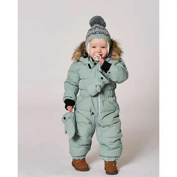 Мембранная ткань (5000 мм/5000 г/м2/24 часа) с полиуретановым покрытием для защиты от атмосферных осадков. Прочная основная молния премиум-класса YKK. Капюшон и тело утеплены флисом для дополнительного тепла. Ветрозащитный клапан и защита подбородка. Внутренняя регулировка на талии. Трикотажные манжеты. Регулируемые штрипки в нижней части штанин для фиксации ботинок на месте. Съемные варежки и пинетки на кнопках с подкладкой из флиса для дополнительного тепла. Капюшон, отороченный искусственным мехом, со снежной юбкой на капюшоне. Светоотражающие полосы. Идентификационная этикетка.