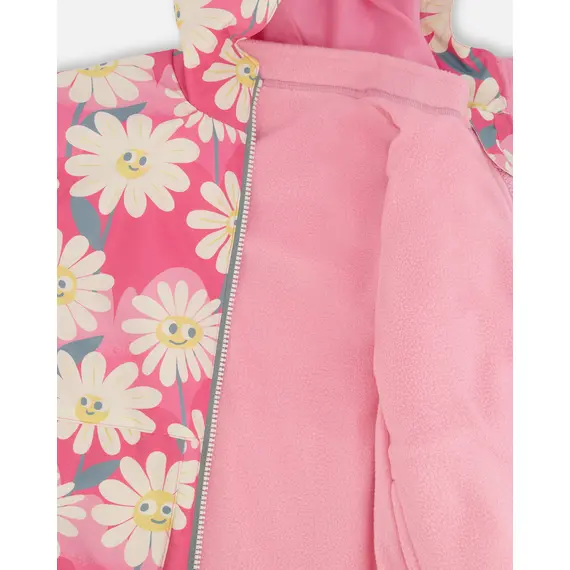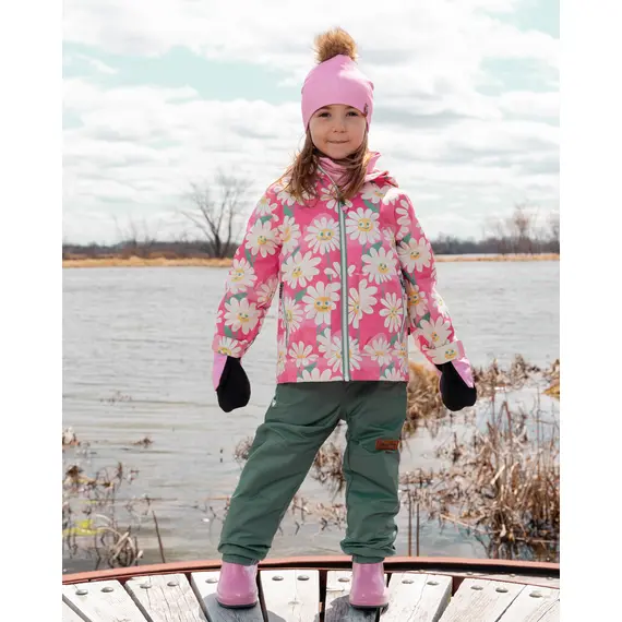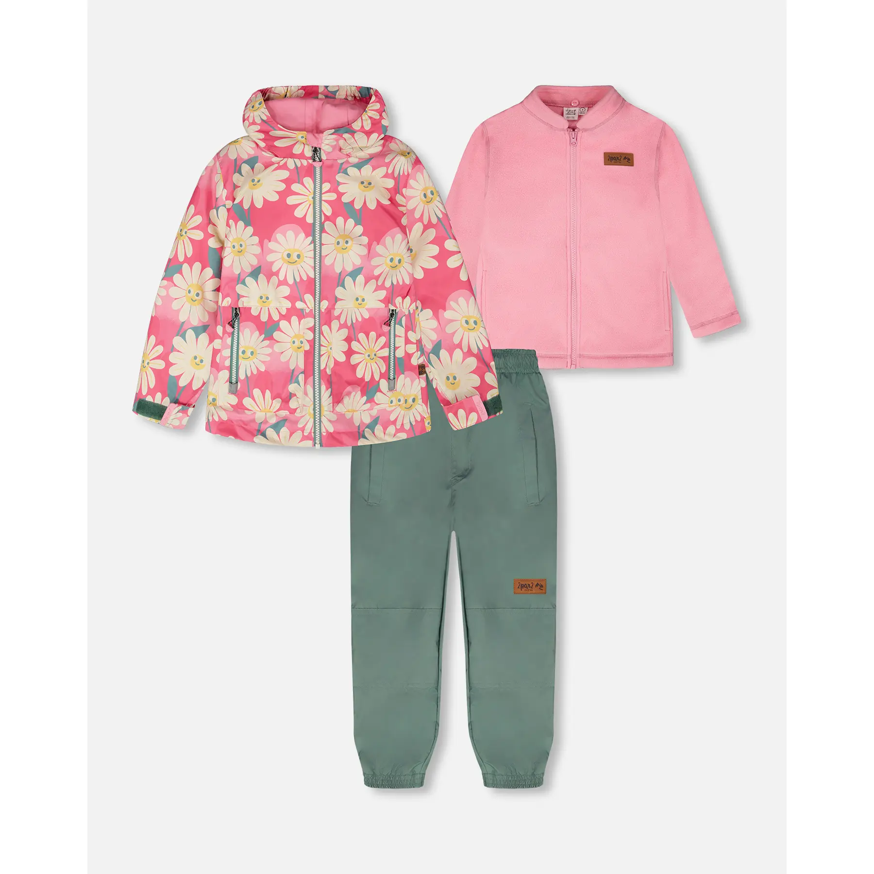 Детский демисезонный костюм Deux par Deux для девочки из коллекции весна/осень 2026 года. В комплект входят куртка, брюки и жакет из микрофлиса. Костюм изготовлен из высокотехнологичной мембранной ткани 3000/3000 с водоотталкивающей пропиткой. Данная ткань не промокает, хорошо защищает от ветра и сохраняет дышащие свойства. Брюки на коленях и по низу штанин усилены износостойким материалом Cordura.