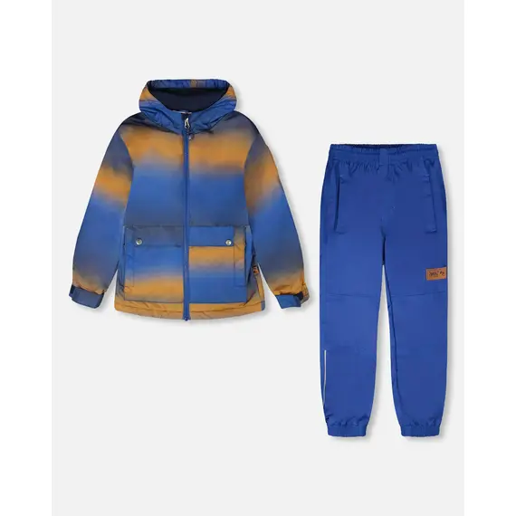 Детский демисезонный костюм Deux par Deux для мальчика из коллекции весна/осень 2026 года. В комплекте идет куртка на комбинированной подкладке с микрофлисом и брюки на резинке. Костюм изготовлен из высокотехнологичной мембранной ткани 3000/3000 с водоотталкивающей пропиткой. Данная ткань не промокает, хорошо защищает от ветра и сохраняет дышащие свойства.