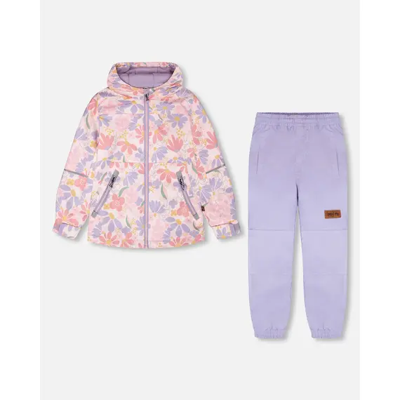 Детский демисезонный костюм Deux par Deux для девочки из коллекции весна/осень 2026 года. В комплекте идет куртка на комбинированной подкладке с микрофлисом и брюки на лямках. Костюм изготовлен из высокотехнологичной мембранной ткани 3000/3000 с водоотталкивающей пропиткой. Данная ткань не промокает, хорошо защищает от ветра и сохраняет дышащие свойства. В костюме используется искусственный утеплитель POLYFILL.