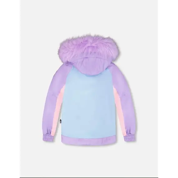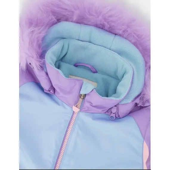 Куртка на флисовой подкладке со съёмным регулируемым капюшоном со съемным искусственным мехом. Прочная высококачественная молния YKK. Снегозащитная юбка с регулировкой по талии, застегивается на кнопки. Ветрозащитный клапан с защитой подбородка. Манжеты с регулировкой по запястью. По мере роста ребёнка длину рукавов можно регулировать до 4 см.