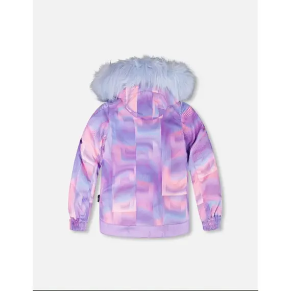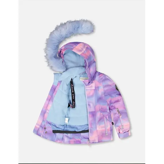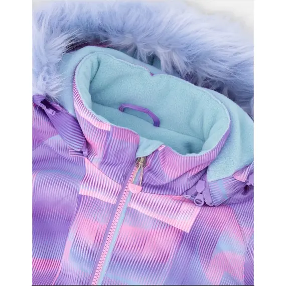 Куртка на флисовой подкладке со съёмным регулируемым капюшоном со съемным искусственным мехом. Прочная высококачественная молния YKK. Снегозащитная юбка с регулировкой по талии, застегивается на кнопки. Ветрозащитный клапан с защитой подбородка. Манжеты с регулировкой по запястью. По мере роста ребёнка длину рукавов можно регулировать до 4 см.