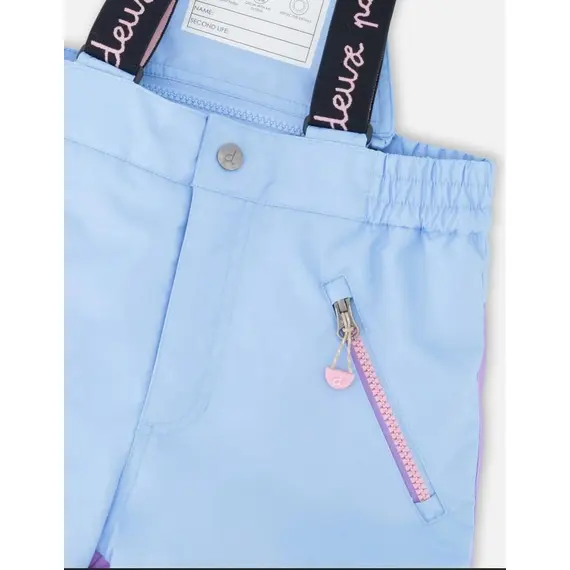Брюки с эластичным поясом и съемными регулируемыми подтяжками. Два кармана на молнии с каждой стороны. Снегозащитная юбка по низу брюк. Усиленные колени, сиденье и низ брюк с помощью износостойкой ткани Cordura. Система роста брюк до 10 см, регулируется при помощи кнопок.